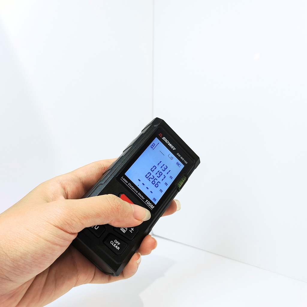 Máy Đo Khoảng Cách Laser SNDWAY SW-MS100 đo xa tới 100m với độ chính xác ±2mm, hỗ trợ tính diện tích, thể tích, đo Pythagoras, đo liên tục và lưu trữ 99 kết quả. Trang bị đèn nền tự động, mức nước thăng bằng, tự hiệu chuẩn và chế độ tiết kiệm pin, thiết bị mang đến độ bền, sự tiện lợi và hiệu quả cho các công trình xây dựng, thi công điện nước, thiết kế nội thất. SW-MS100 là lựa chọn lý tưởng cho cá nhân và chuyên nghiệp cần sự nhanh chóng và chính xác trong đo đạc.