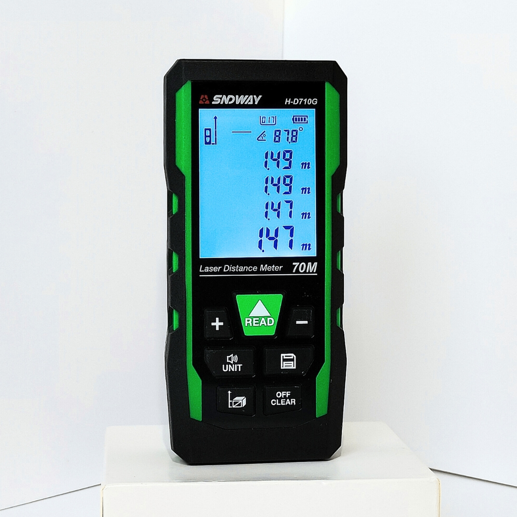 SNDWAY H-D710G là máy đo khoảng cách laser xanh đa chức năng, hỗ trợ đo khoảng cách, đo liên tục, đo góc nghiêng, đo gián tiếp Pythagoras và cộng/trừ kết quả. Máy có tia laser xanh siêu sáng, dễ quan sát cả trong nhà lẫn ngoài trời. Thiết kế nhỏ gọn, chống trượt, thao tác bằng một tay tiện lợi. Tích hợp phát giọng nói thông minh và pin Li-ion sạc USB, tiết kiệm năng lượng. Phù hợp cho thi công nội thất, khảo sát công trình, cơ khí, điện lạnh và kỹ thuật chuyên nghiệp.